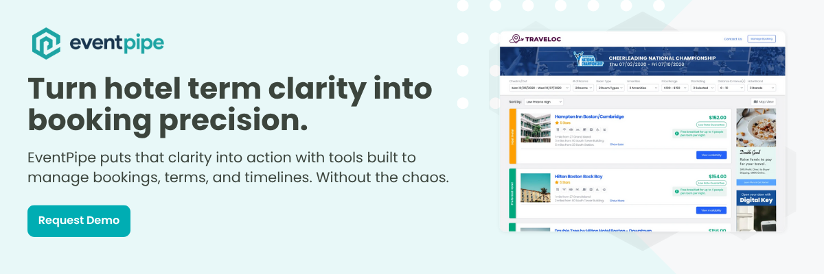 Hotel terminology isn’t always clear, and when it’s misunderstood, it can be costly. From “attrition” to “room nights” to “cut-off dates,” these details can make or break your hotel booking strategy. Knowing what every hotel term means (and how it’s applied) helps you negotiate smarter, prevent mistakes, and keep your events running smoothly.